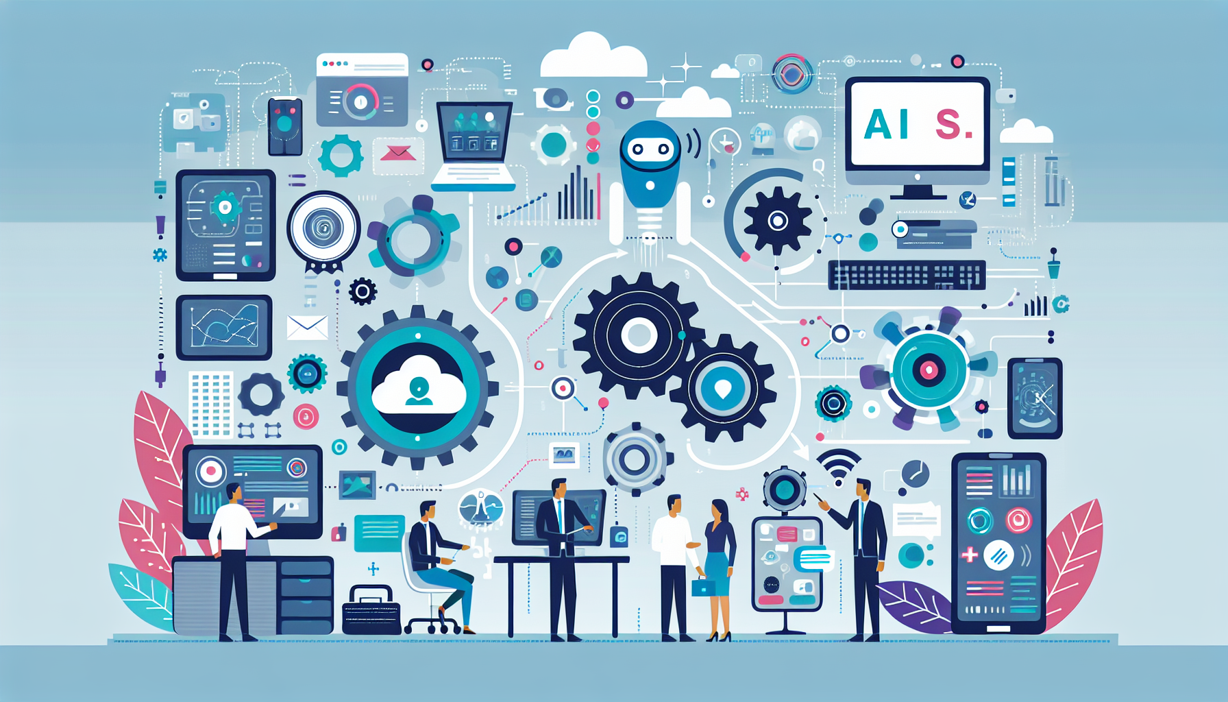 自動化を実現するためには、まず現状の業務フローを分析し、自動化可能なポイントを特定する必要があります。チャットボットの導入やドキュメント管理の自動化など、実装事例として多くの企業で導入が進んでいます。